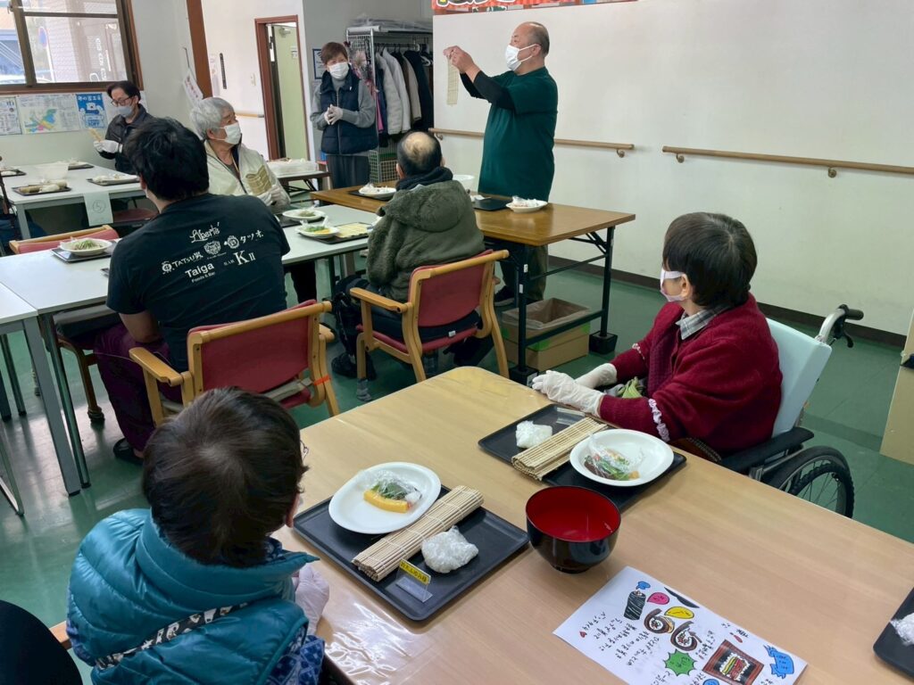 皆さんが集まったところで、調理長による「恵方巻講座」がスタート✨