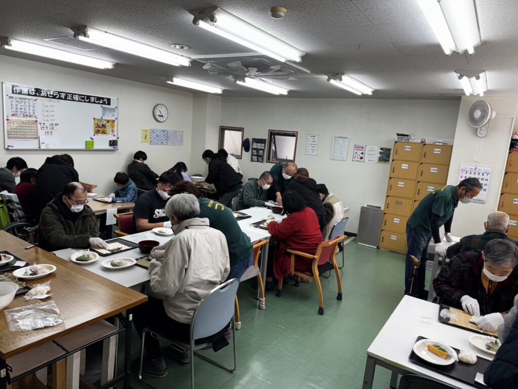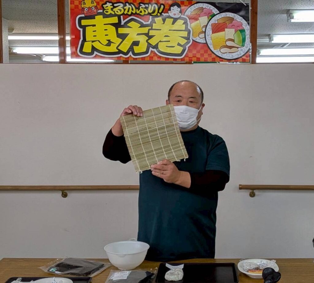 朝から恵方巻に向けて、調理長が仕込みをし、職員は準備に大忙し!