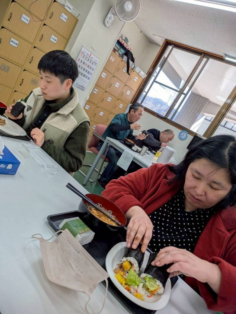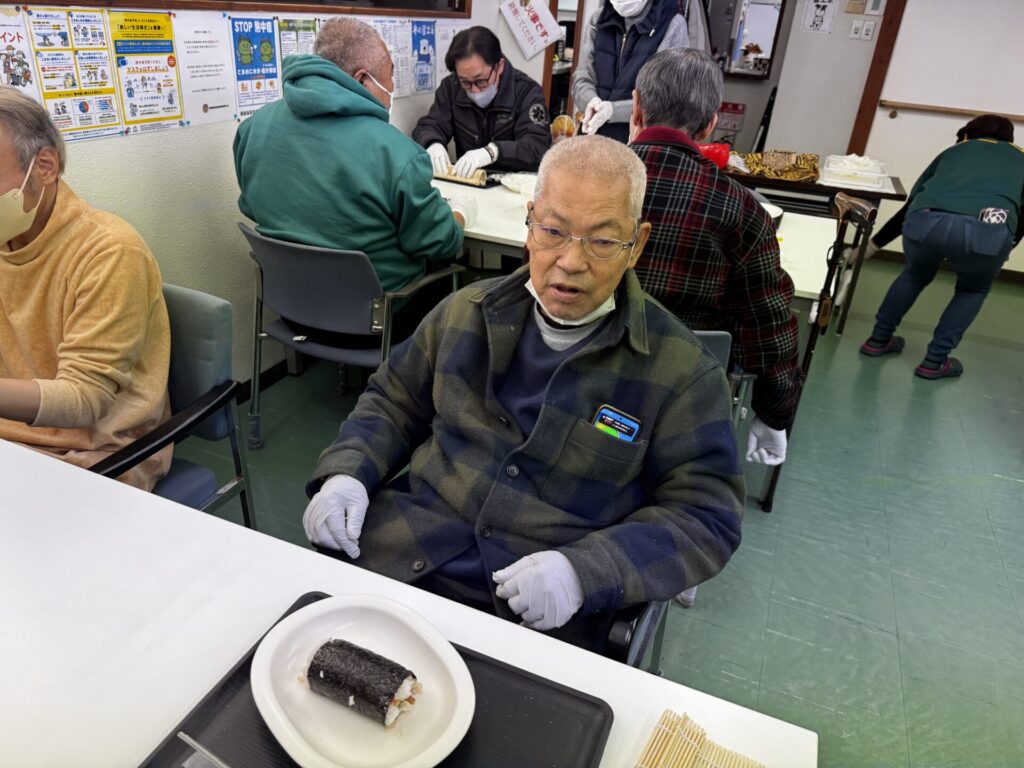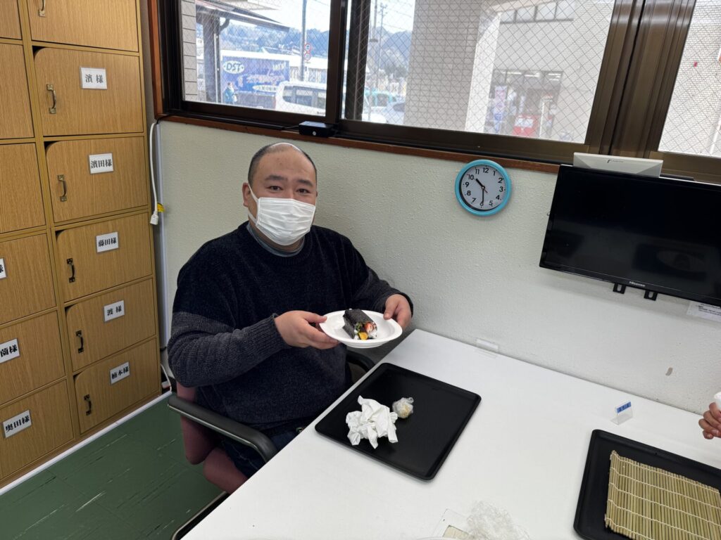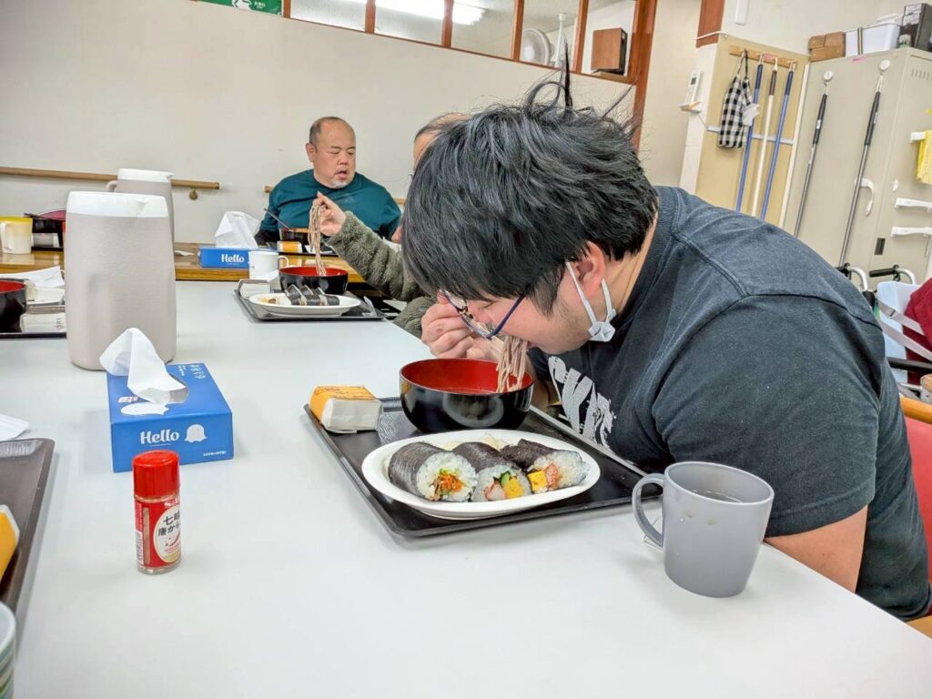 自分で作った恵方巻、みんなと食べる恵方巻、そして温かいお蕎麦…とても美味しかったです😊