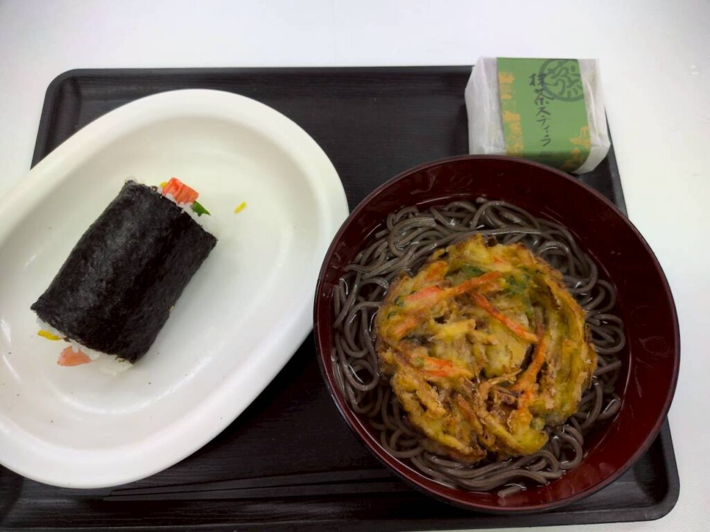 皆さん手作りの恵方巻とかき揚げそば!